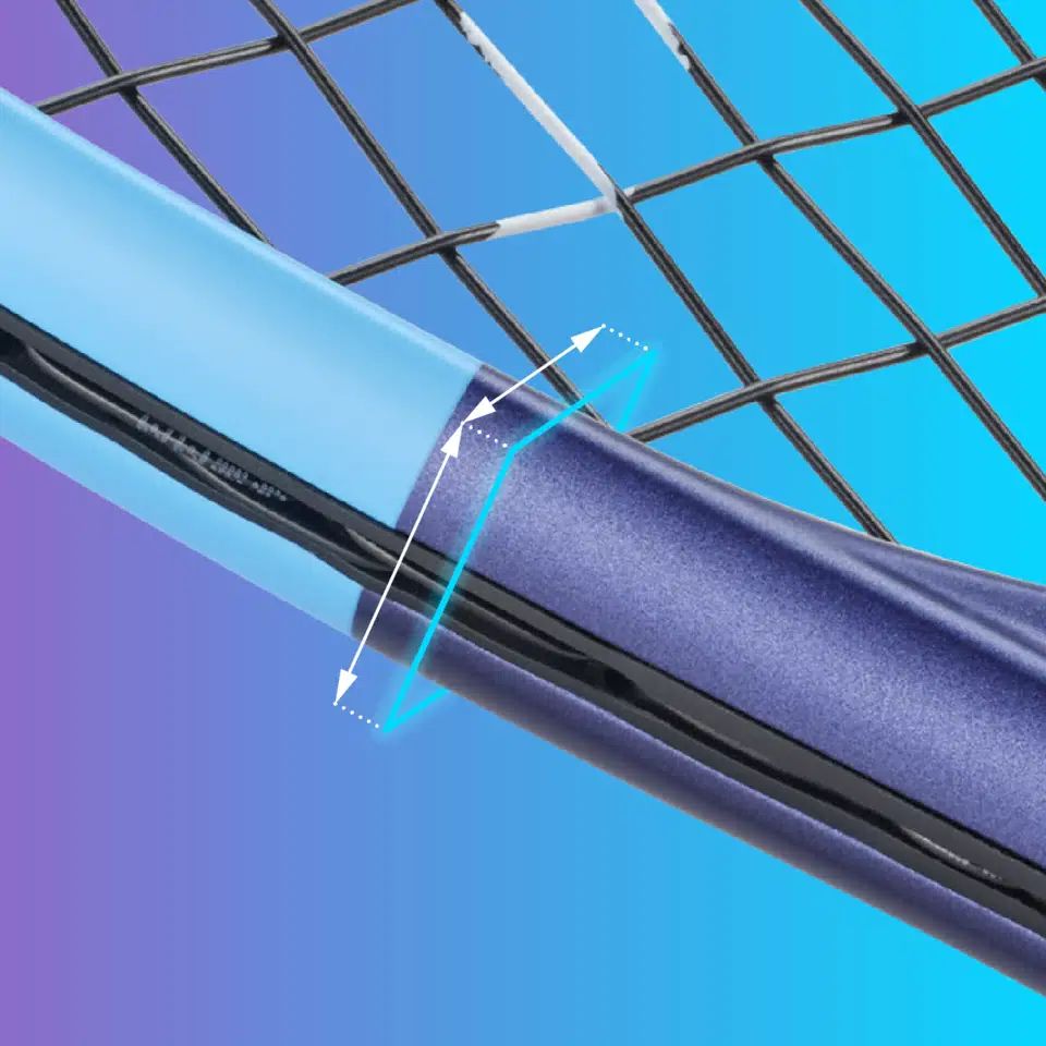 POWER BOOST + FRAME GEOMETRY - zwiększona grubość ramy w okolicach godzin 3-5 i 7-9 zwiększa sztywność rakiety, zapewniając większą prędkość piłki. Grubsza rama tworzy większy sweet spot, zwiększając prędkość piłki w górnej części rakiety.