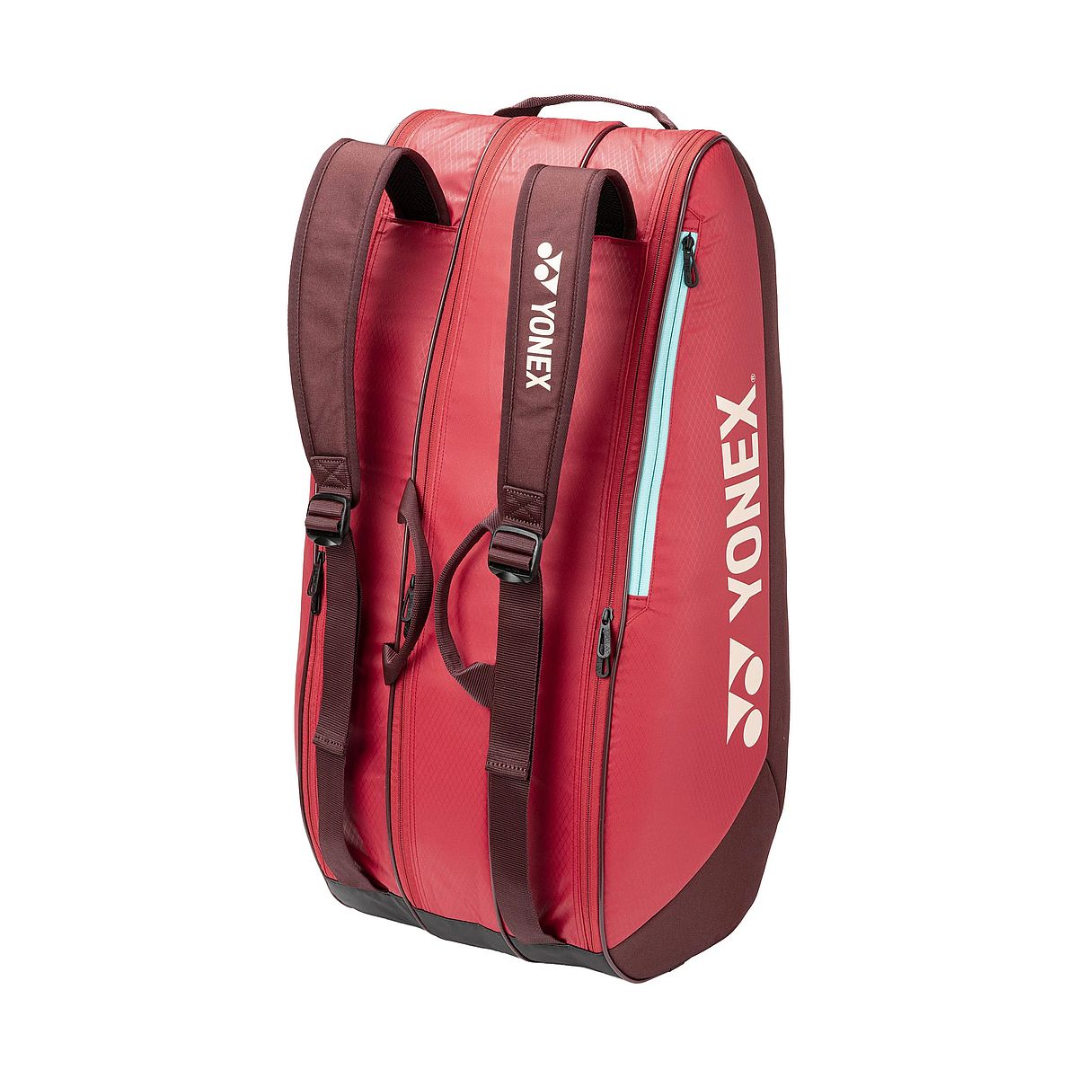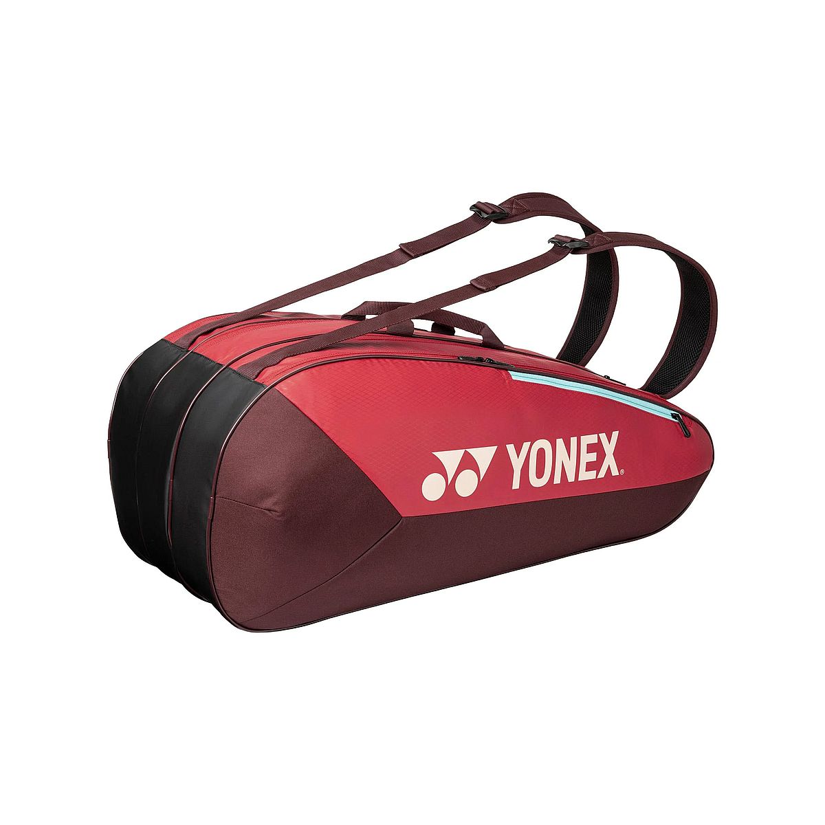 Yonex Team Bag 42529 - trzykomorowa torba przeznaczona nawet na 9 rakiet. Propozycja dla zawodników klubowych oraz osób grających rekreacyjnie. Kolorystyka spójna z linią rakiet Yonex Vcore Ruby Red
