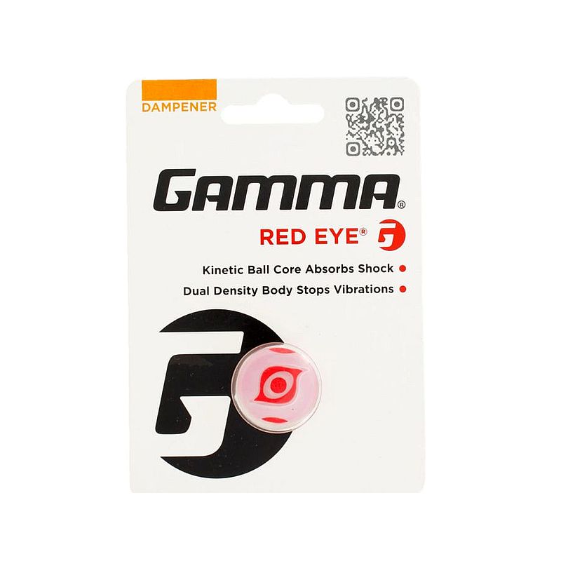 Gamma Red Eye Dampener - nowatorski tłumik drgań do rakiet tenisowych. Wykonany z dwóch warstw silikonów o różnych gęstościach, które skuteczniej tłumią drgania, w szerszym zakresie niż duże tłumiki silikonowe.