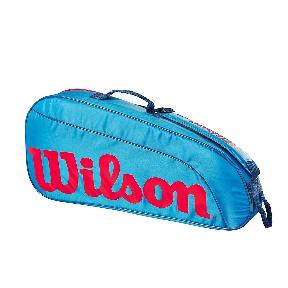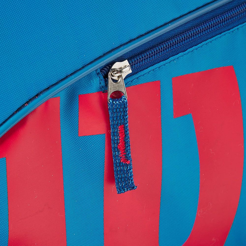 Wilson Junior 3 Pack Bag - jednokomorowa, mała torba dla dzieci i młodzieży przeznaczona na juniorskie rakiety do tenisa, squasha czy badmintona. Komora główna zmieści rakietę oraz kilka najbardziej potrzebnych na korcie rzeczy. Zamykana za pomocą dwukierunkowego suwaka. Dodatkowa kieszeń z zamkiem na jednym z boków na akceosria i rzeczy podręczne.